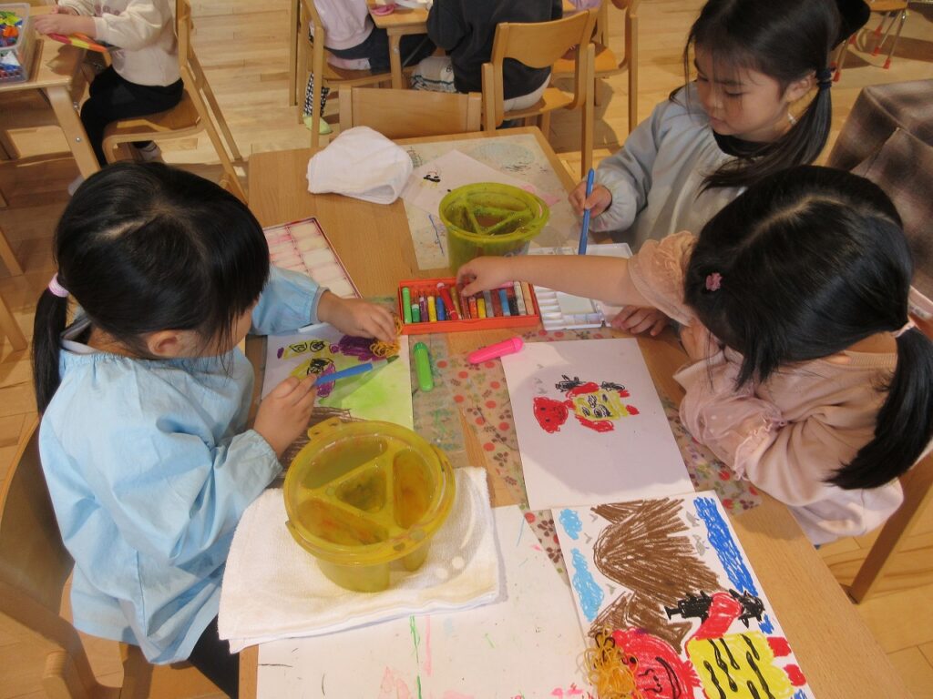 新しいクラスが始まって、早くも1ヶ月が経とうとしています。初めは、新しい環境に緊張する姿も見られましたが、日々の生活や遊びの中で少しずつ慣れ、今では「一緒に遊ぼ!」とお友達と楽しく過ごす姿や、登園時、笑顔でお部屋に入ってくる姿が多く見られるようになってきました。きく・ゆり組さんは、ばす組の子たちが入ったことで、優しく声をかけたり、身の回りのことを手伝ったりと、お兄さん、お姉さんとしての姿を見せてくれています。そのおかげで、ばす組さんも安心して過ごしていますよ。これからも、子どもたち同士の関わりを大切にしながら、みんなで楽しく過ごしていきたいと思います♪