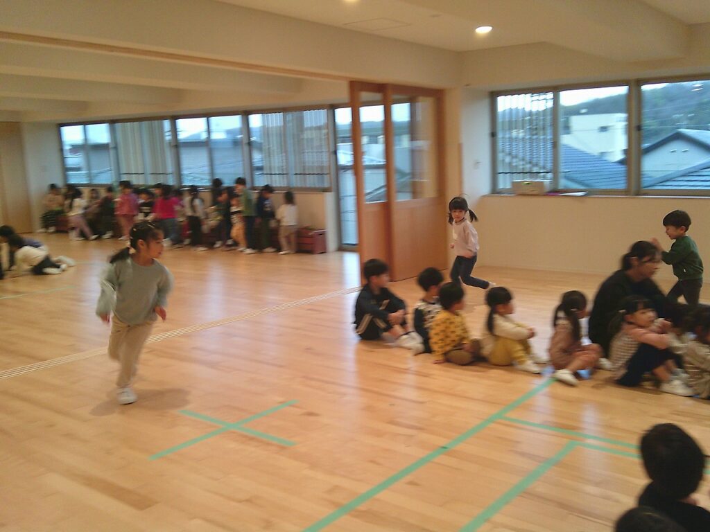 外に出られない時には、ホールで体を動かして遊んでいます。ホールで遊ぶのも子ども達は大好きで、「今日はなにするのー?」と楽しみにしています。ばす組さんは初めての集団ゲームも、何回かするうちにルールを覚えられるようになり、楽しむ姿が見られ嬉しく思います♪