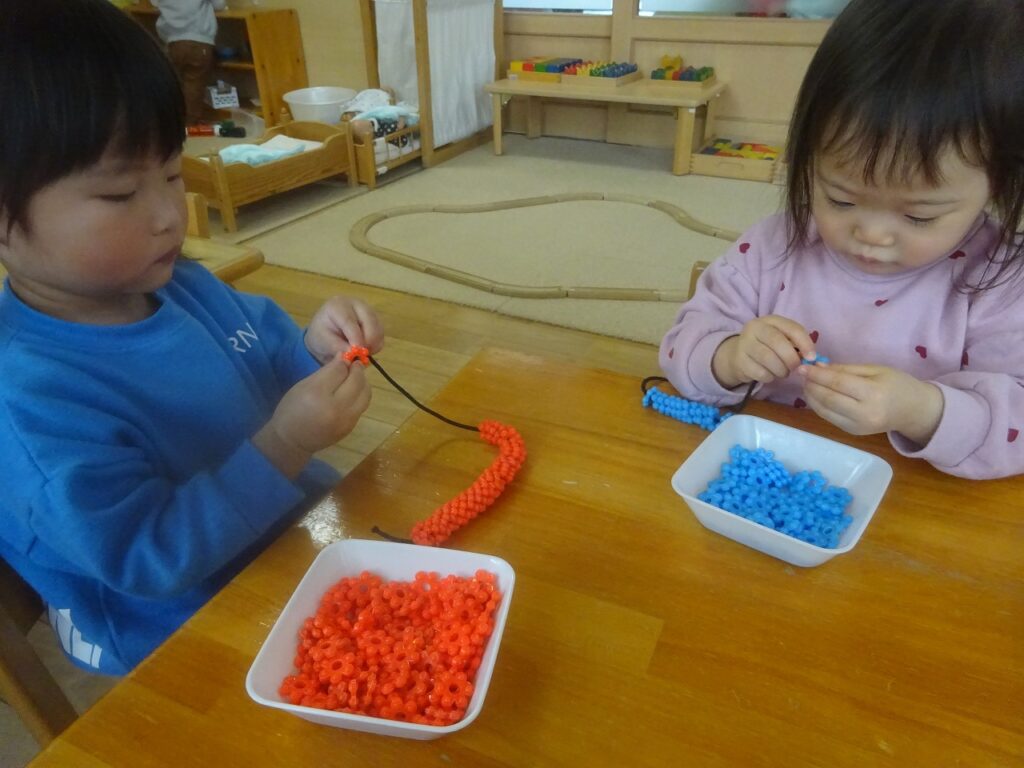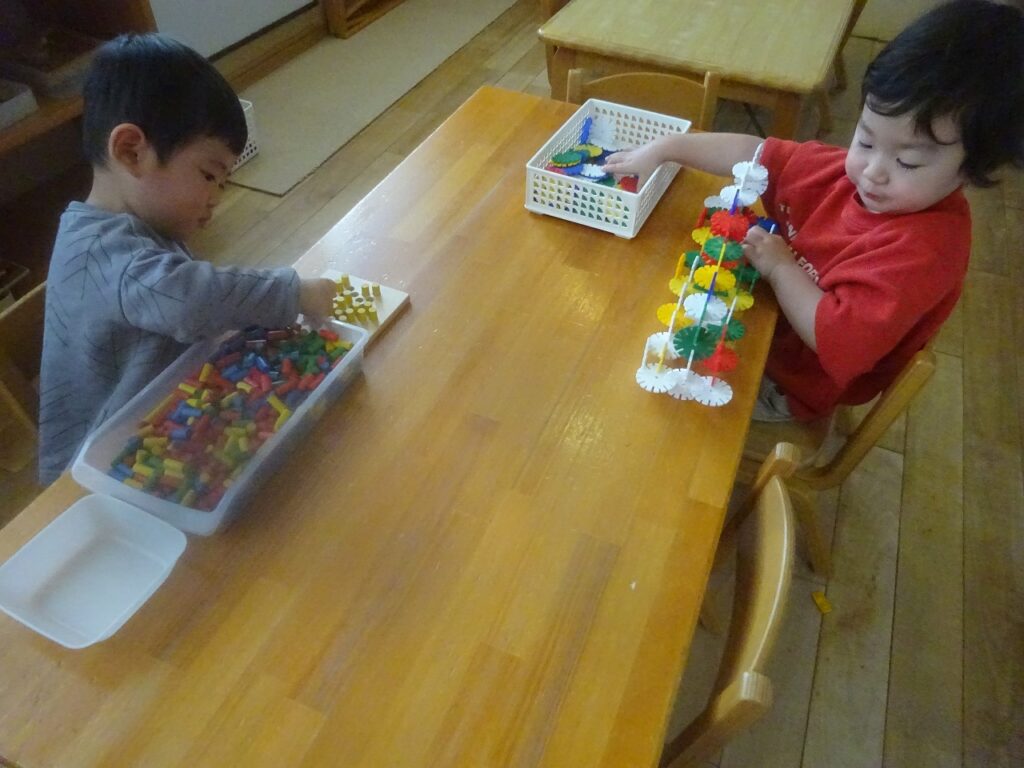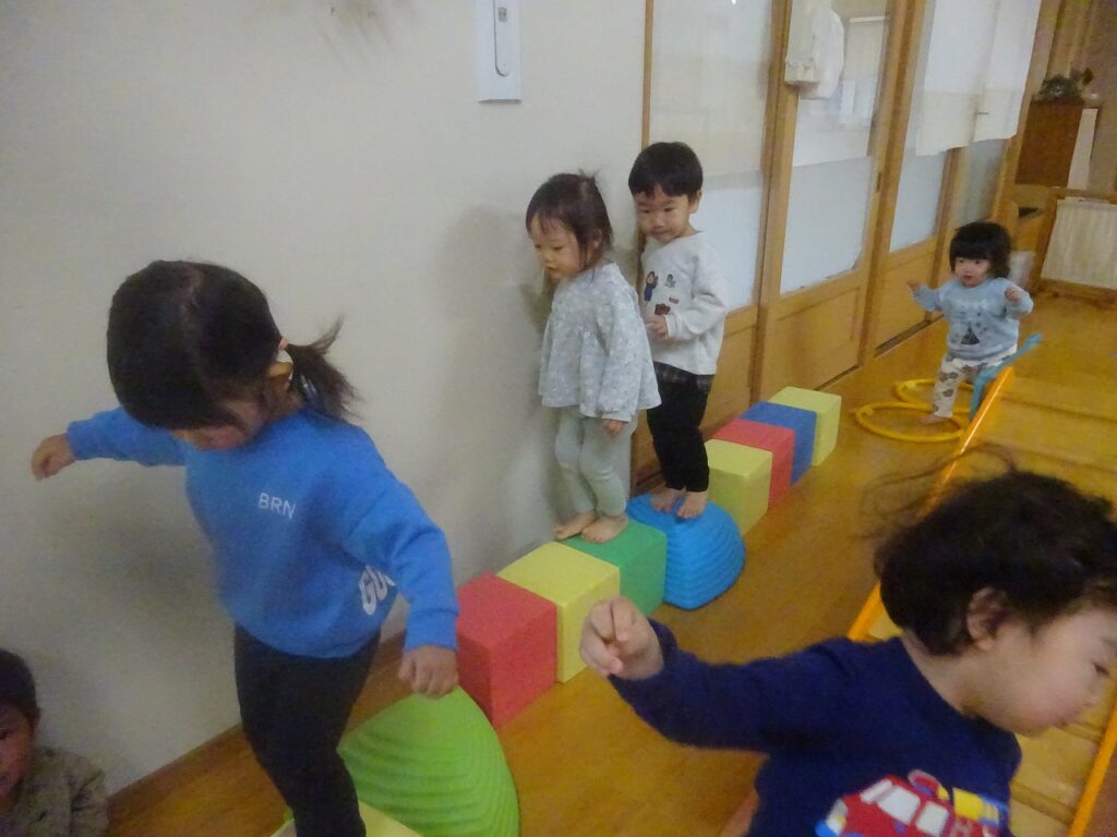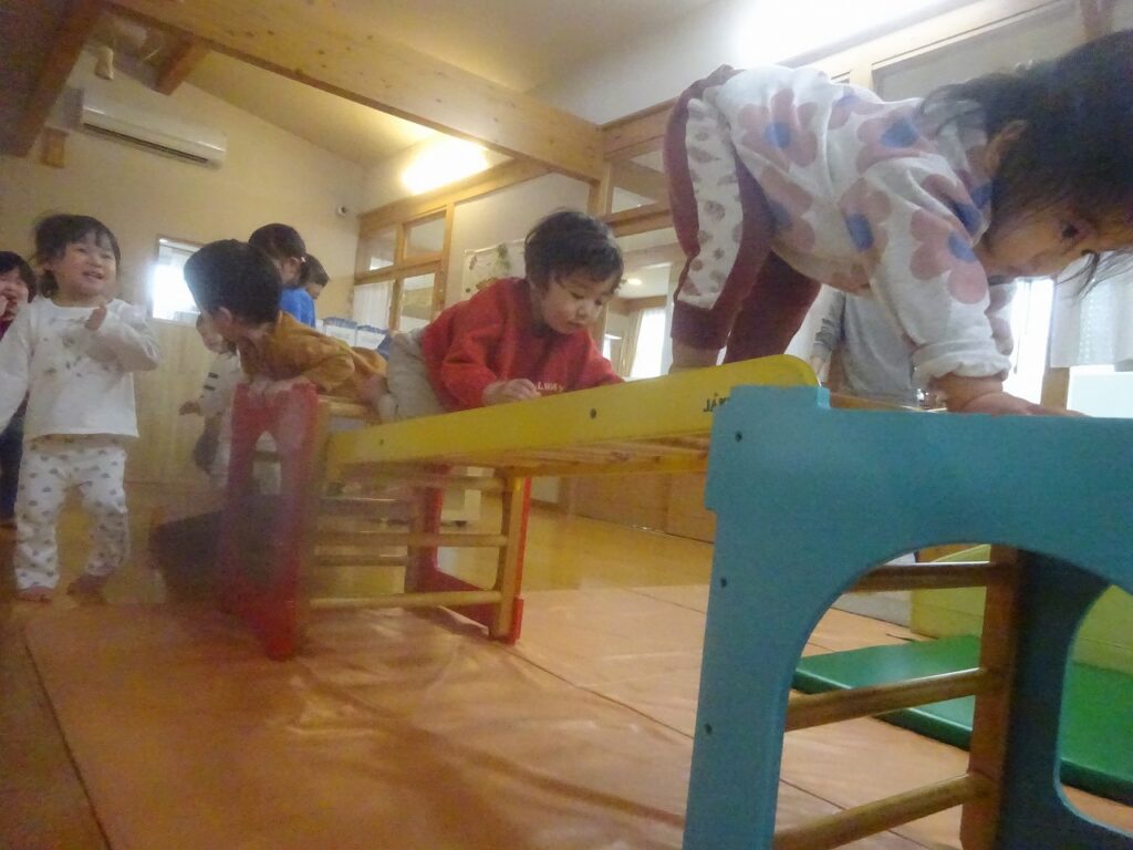 1月になり、生活、遊びと共に更にできることが増え、自分でやりたい!という気持ちも見られるのでその時には見守るようにし、困っている時に少し手伝うようにしています“自分でできた”この気持ちは子どもたちの自信になり、さらに