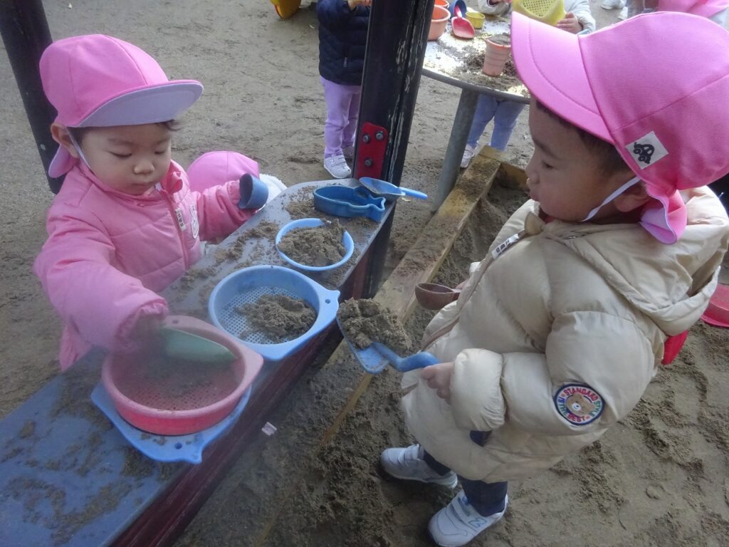 友達と手を繋ぎ散歩に行ったり、本園の砂場園庭に遊びに行くようになり