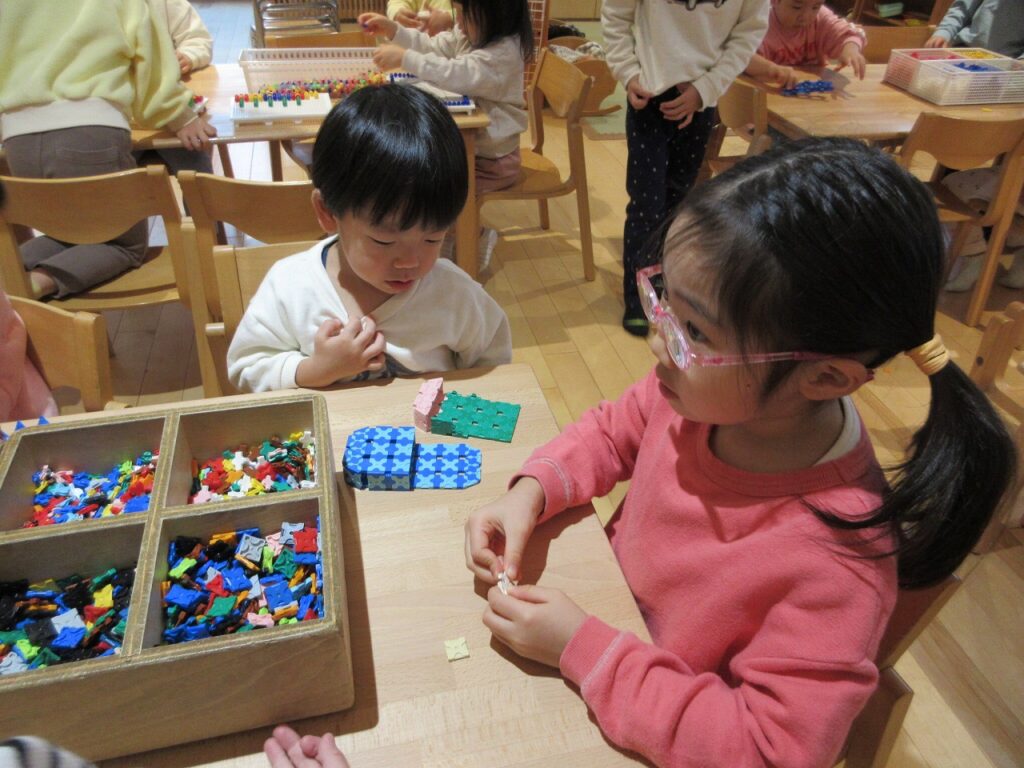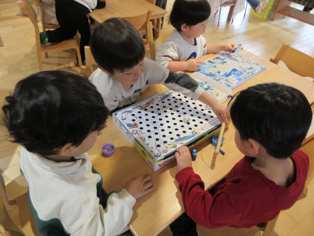 ばすさんは、ばすぐみのお部屋にはなかったおもちゃを棚から取り出して、よく遊んでいます♪種類も増えたので、ワクワク!ゲームなどは、お兄さんお姉さんに気にかけてもらいながら、伸び伸びと遊んでいますよ。ばすさん・きくゆりさん双方にとって良い刺激のようです!遊びや生活の中から自然と輪も広がっていて、嬉しく思います!「一緒にしようよ!」「手伝ってあげよっか?」ときくゆりさんの包容力は無限大です!
