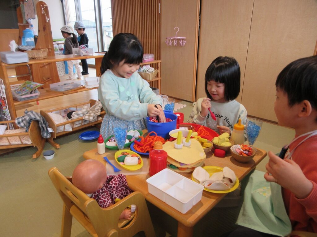「お寿司を作ってるんだ~!」「じゃあ私はマグロ作るね!」