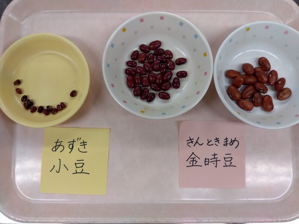 ゲームの後には、金時豆に似ている”小豆”も一緒に見比べてもらいました。煮豆は小豆の豆だと思っていた子も多いようで、金時豆を初めて知った様子でした。