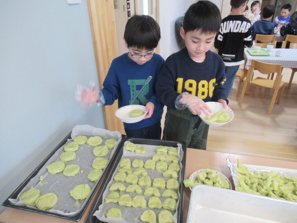 普段抹茶むしパンが苦手という子もたくさんいますが、この日はみんな完食!自分でトッピングをすることや、形抜きをすることで特別感もでて美味しかったみたいです^^たくさん食べてくれて楽しいクッキングとなりましたお