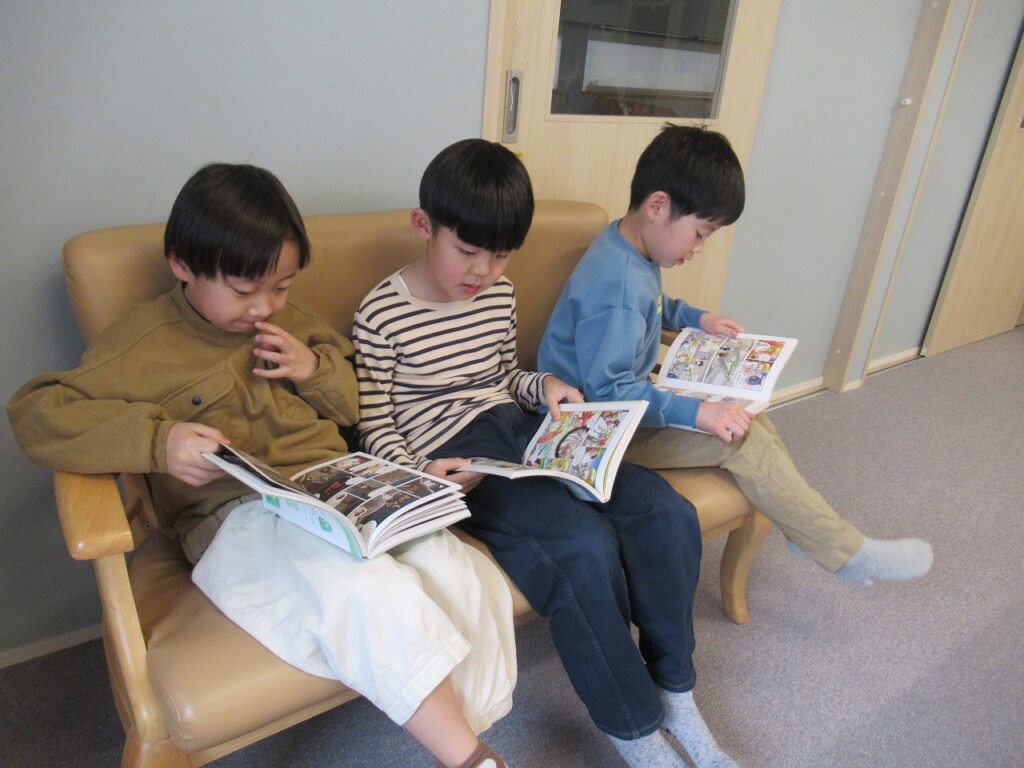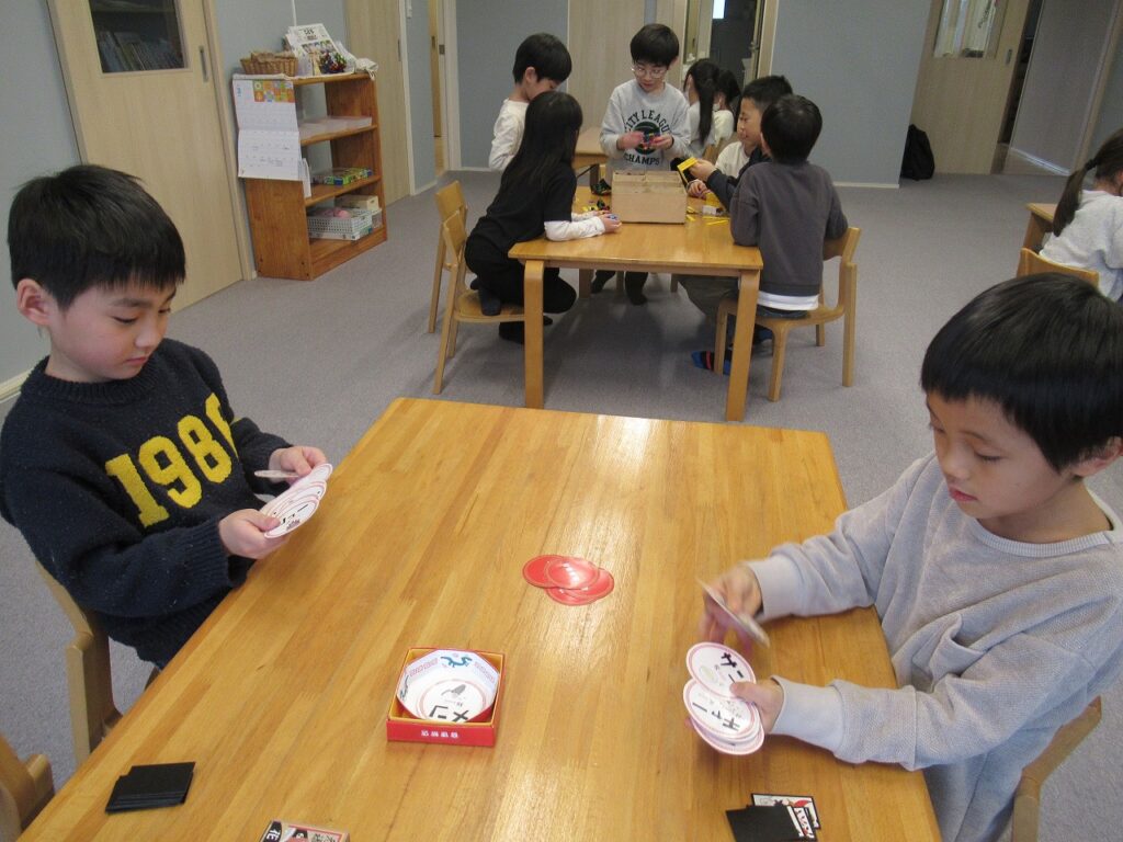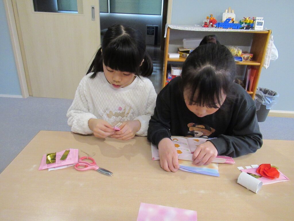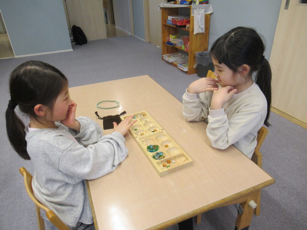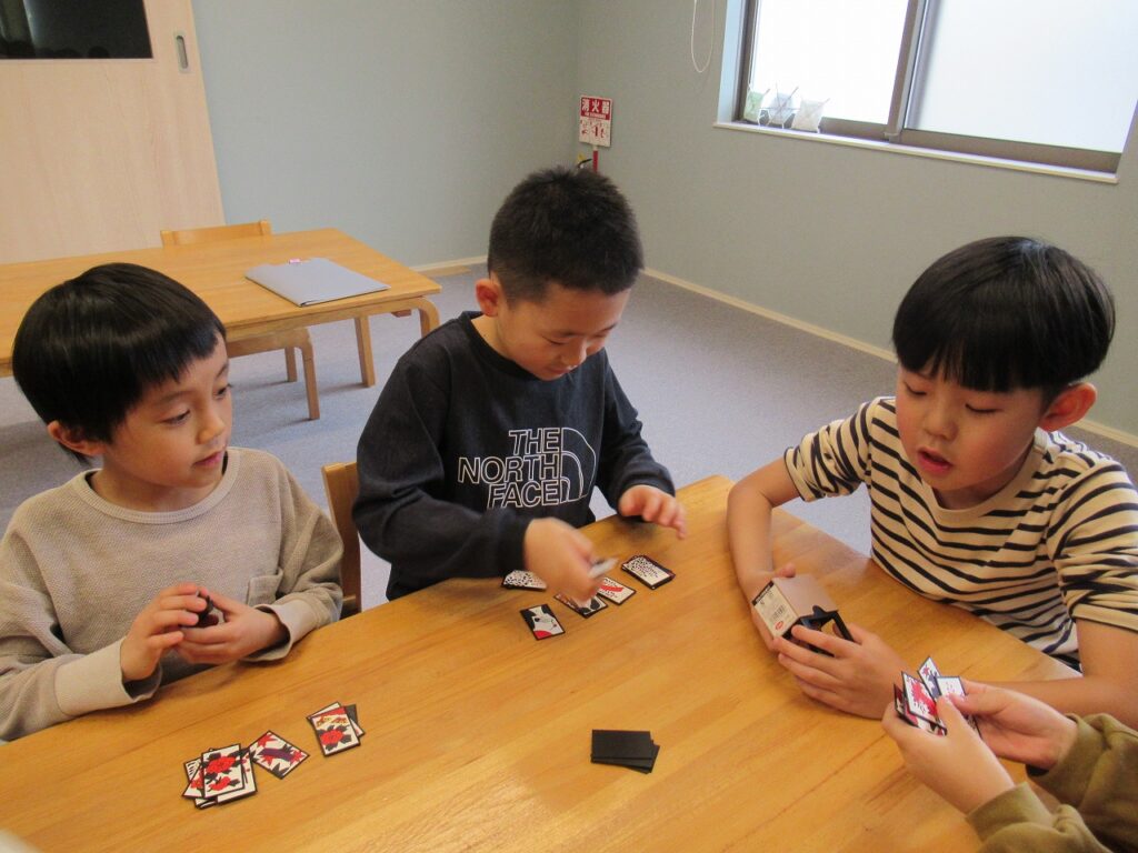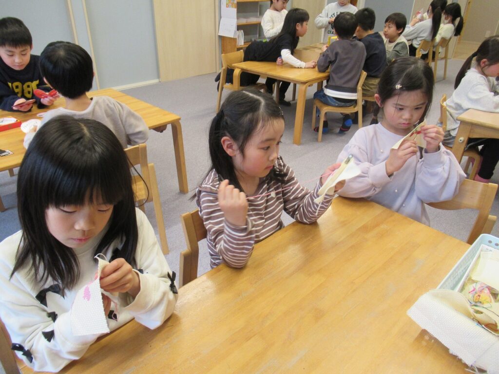 学校の宿題が終わった子から遊びに入っています。友達とゲームに誘い合って楽しむ子や、クロスステッチなど手芸的なことの続きを取り組む子などそれぞれが楽しんでいます。