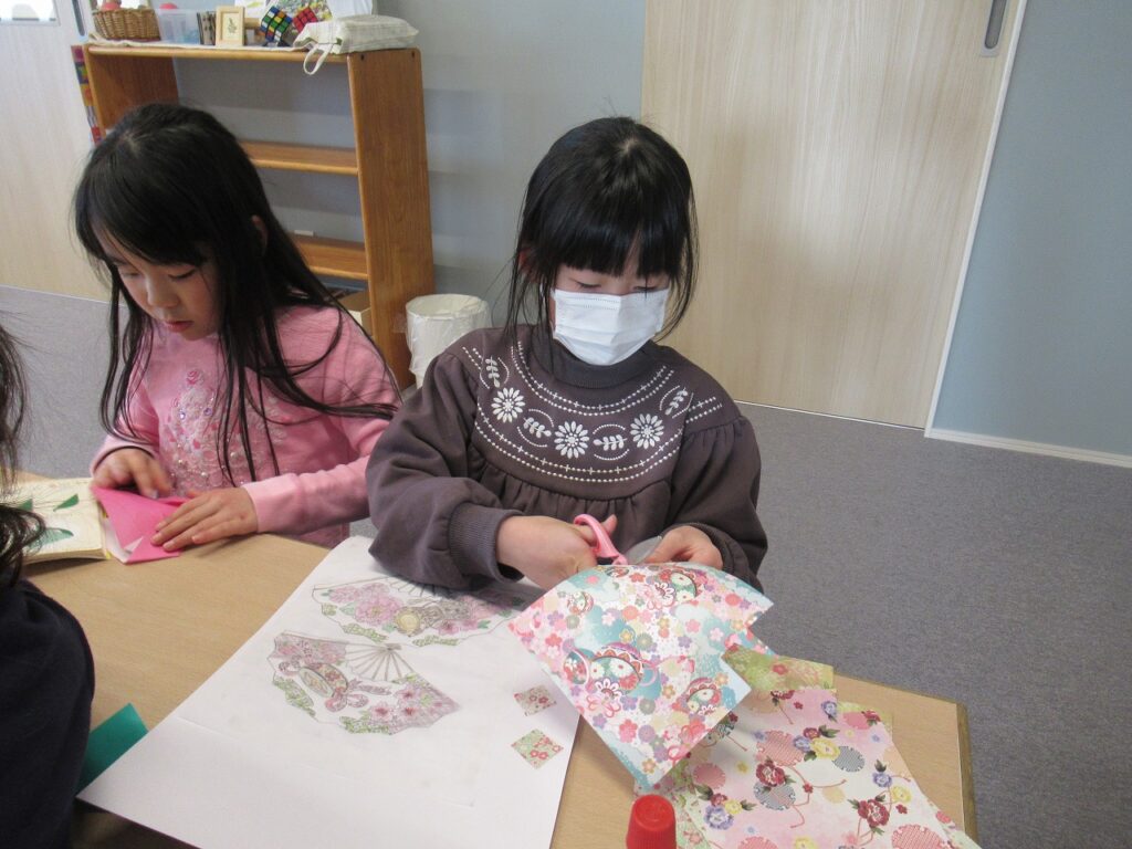 制作などでは、自分で考えて工夫する姿が多く見られるようになってきて、アレンジをしたりと子どもたちのアイディアがとても面白く工夫する姿を大切にしながら見守っています。